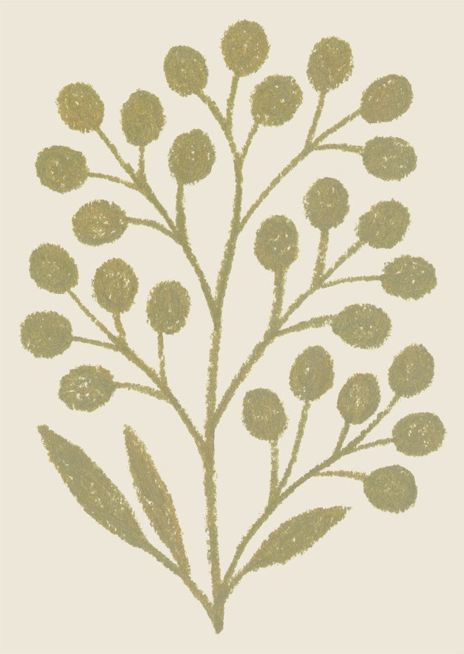 Olive Branch by Silvia Visscher presents a refined botanical composition featuring delicate foliage rendered against a warm, neutral palette. This piece captures the understated elegance of natural forms through careful attention to line and composition. The interplay between the organic branch structure and the soft beige background creates visual balance, making it an ideal choice for contemporary interiors seeking sophisticated, nature-inspired artwork. Perfect for adding subtle visual interest to living spaces, bedrooms, or offices without overwhelming existing décor.