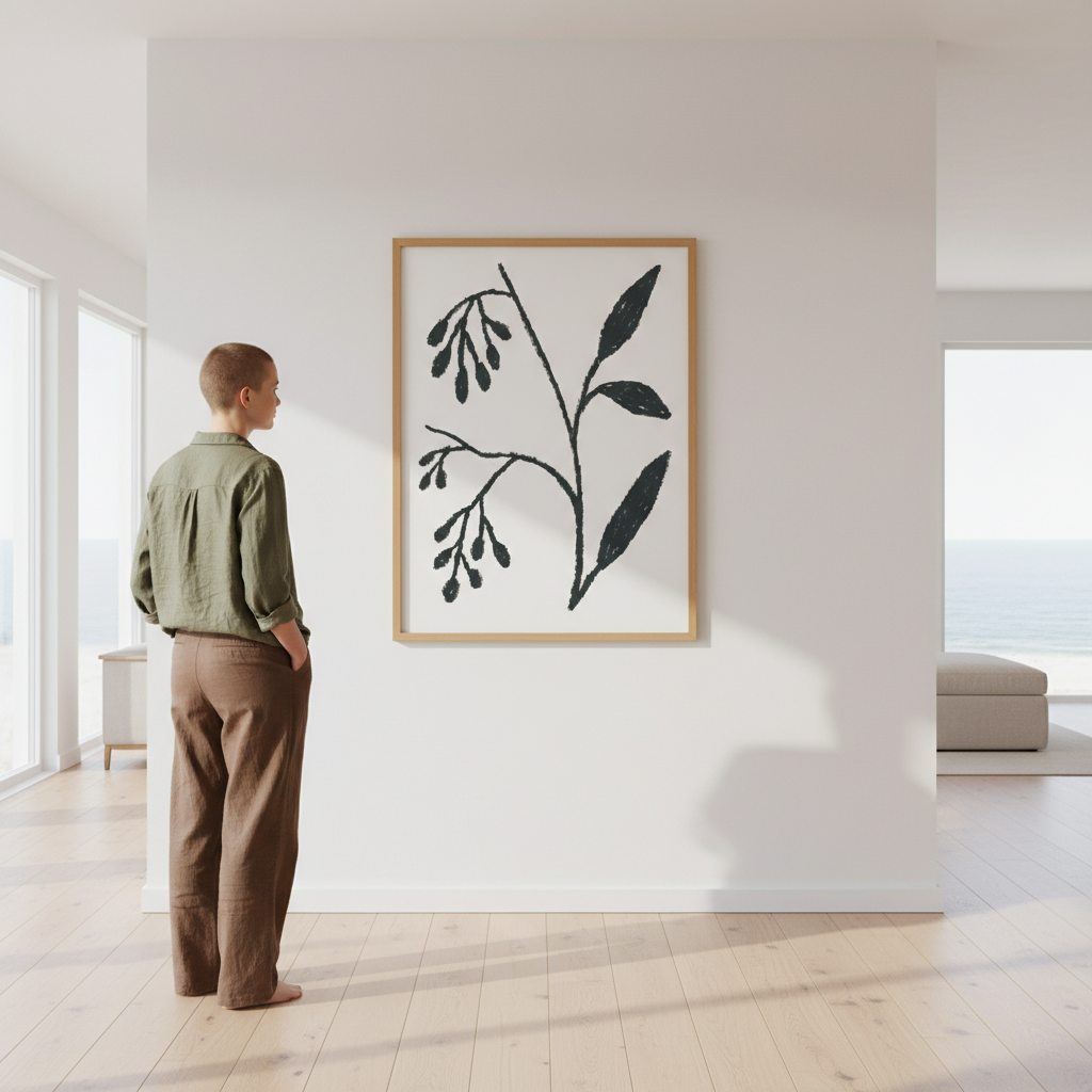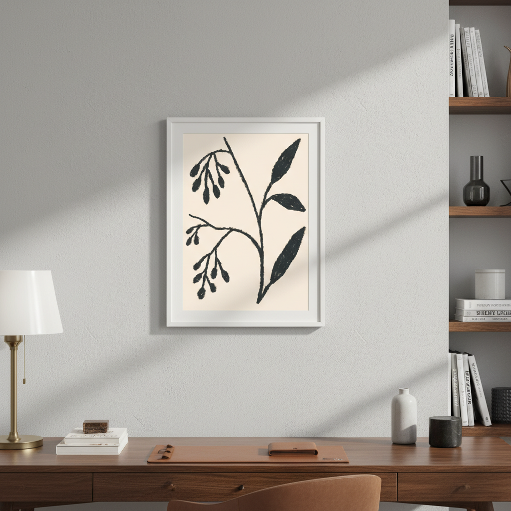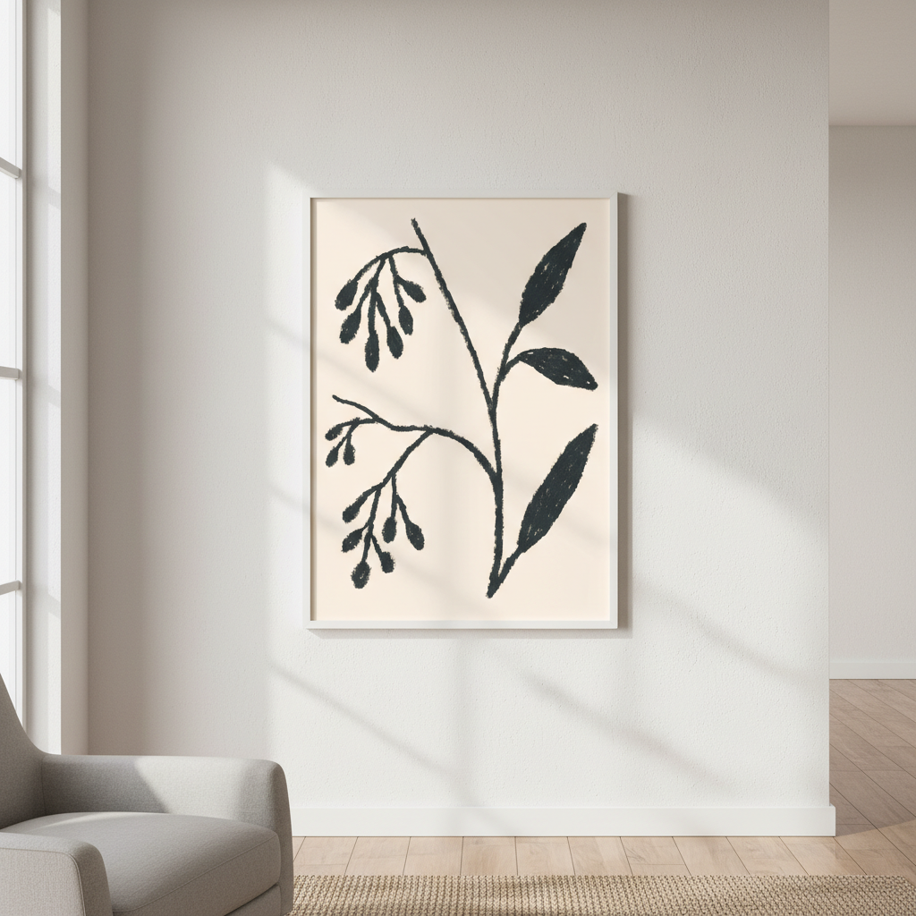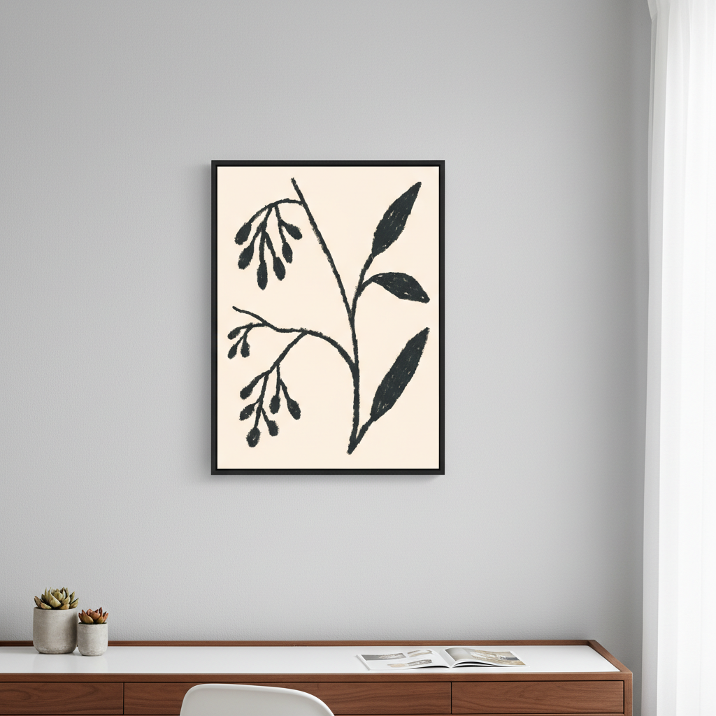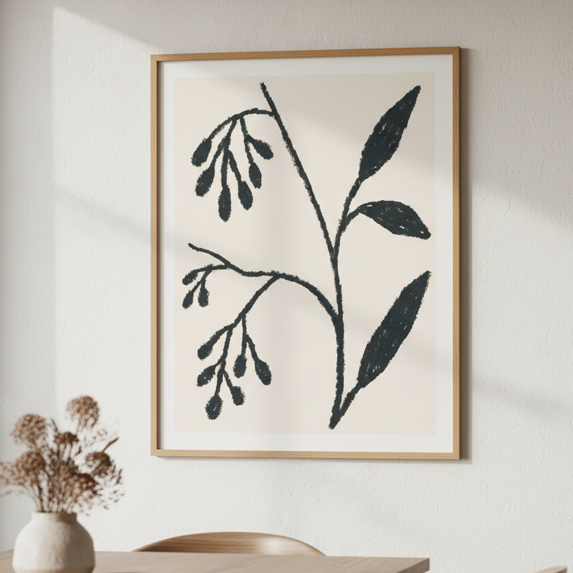 Winter by Silvia Visscher presents a striking botanical study rendered in deep black linework against a warm beige canvas. This sophisticated illustration captures the delicate structure of winter flora with meticulous detail, showcasing the artist's refined technique. The high-contrast composition creates visual depth while maintaining an understated elegance, making it an ideal choice for contemporary interiors seeking artistic authenticity. Perfect for galleries, studies, or living spaces that appreciate botanical art with a modern sensibility.