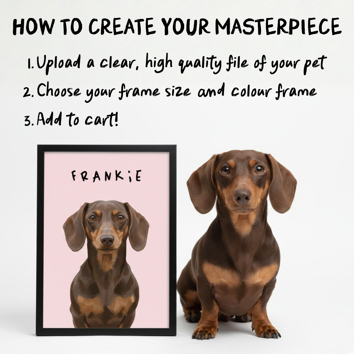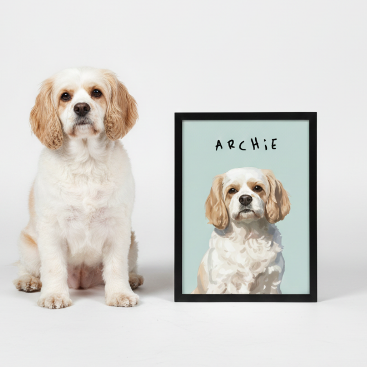 Choose from portrait or landscape, colours and input your pets name to customise your art