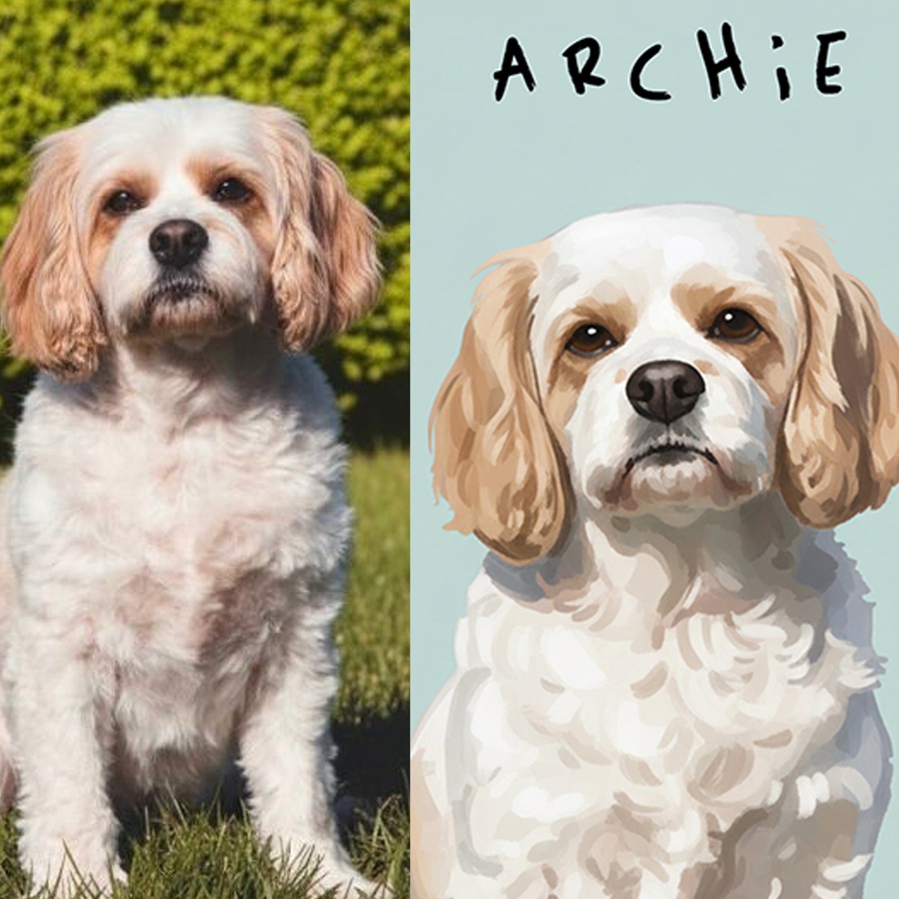 • Fully custom illustrated artwork from your pet’s photo
