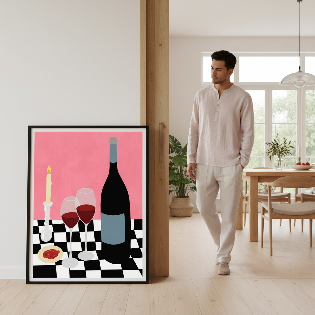 Romantic Dinner with Vino by Yuan Zhang captures the magic of an intimate evening in stunning detail. This real canvas painting—digitized from our team's rising star artist—weaves vintage charm with contemporary flair, evoking candlelit moments and timeless elegance. Perfect for kitchens and dining spaces, it's a conversation starter that brings warmth, sophistication, and a touch of romance to your walls. A true dark horse winner from our 2025 Christmas celebration.
