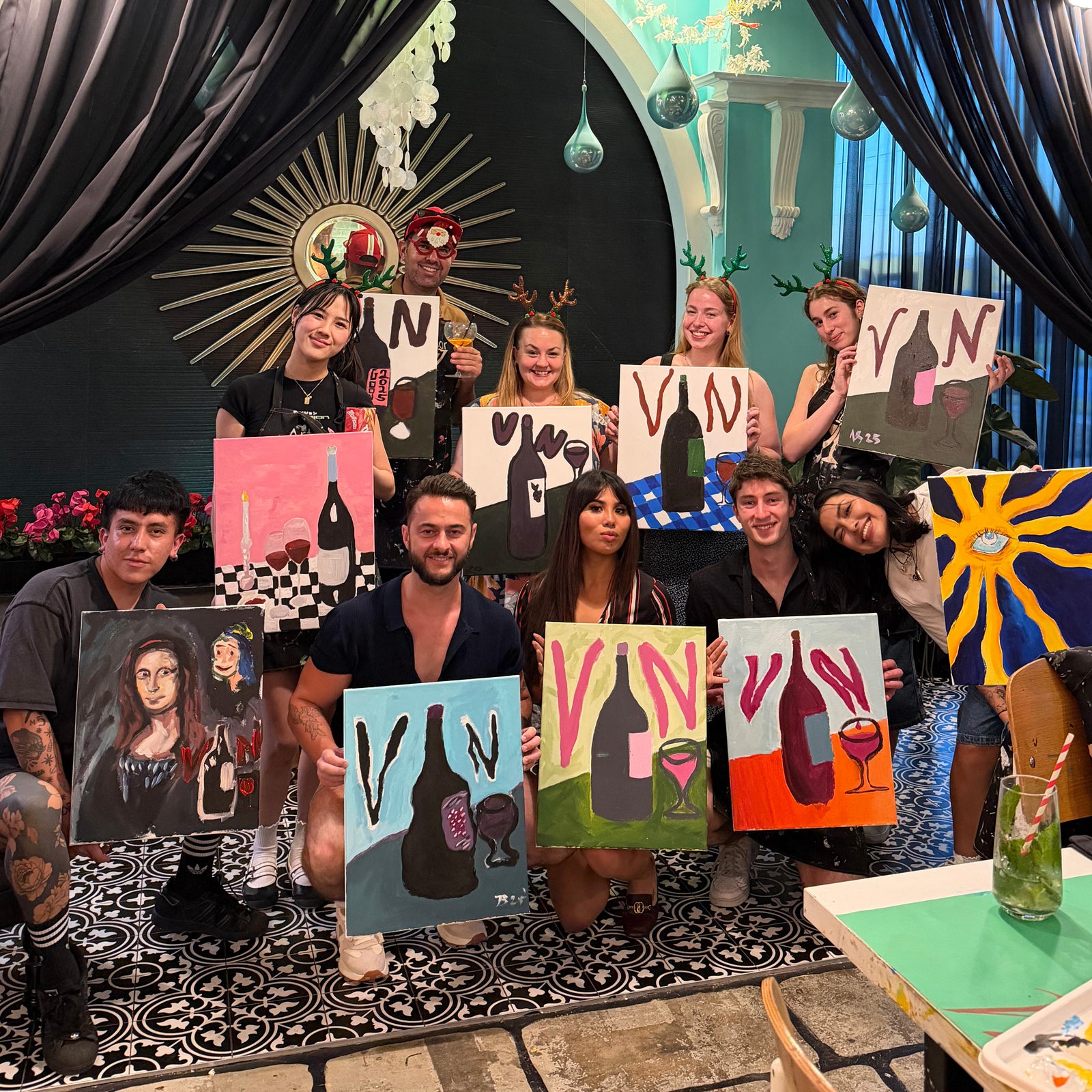 Our Staff Sip & Paint Xmas 25 Collection features hand painted artworks created by our own team during a Christmas sip and paint session. Each piece is painted on real canvas, then carefully digitised so you can enjoy it on your walls at home.