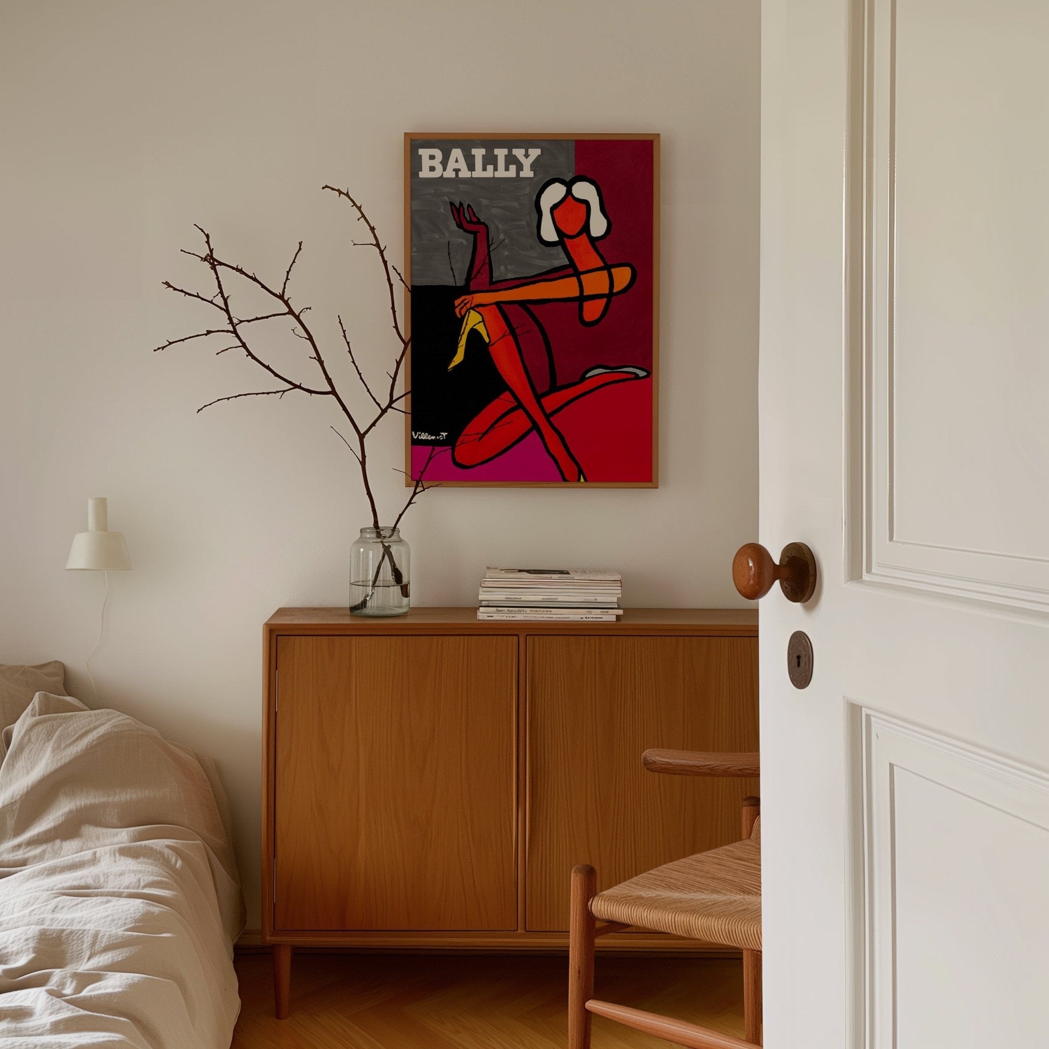 This vintage 1970 Bally Pink Fashion Advertising Poster by renowned artist Bernard Villemot showcases the iconic brand's chic style. With its bold colors and modern design, this poster is a must-have for any fashion enthusiast or collector. Guaranteed to add a touch of sophistication to any space.