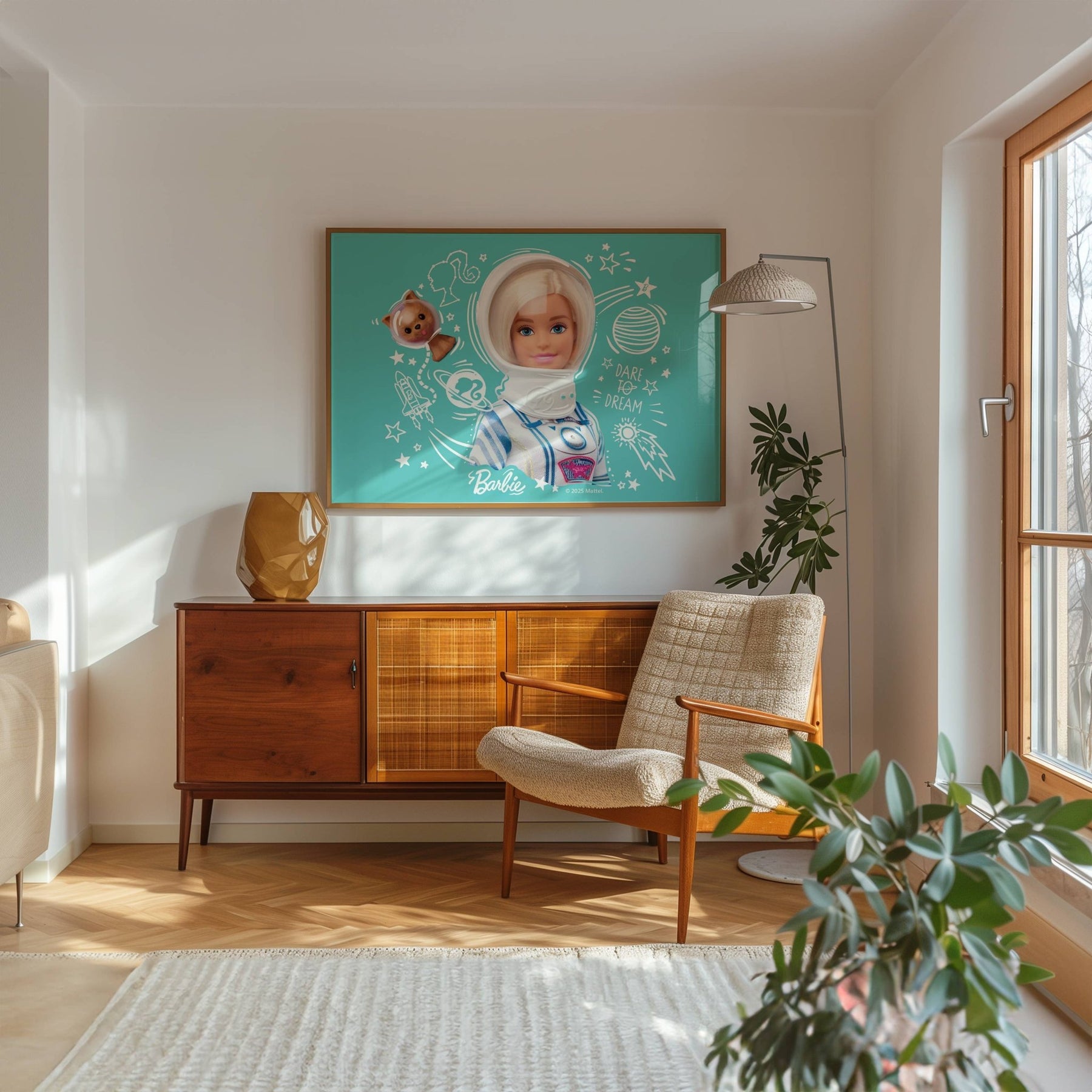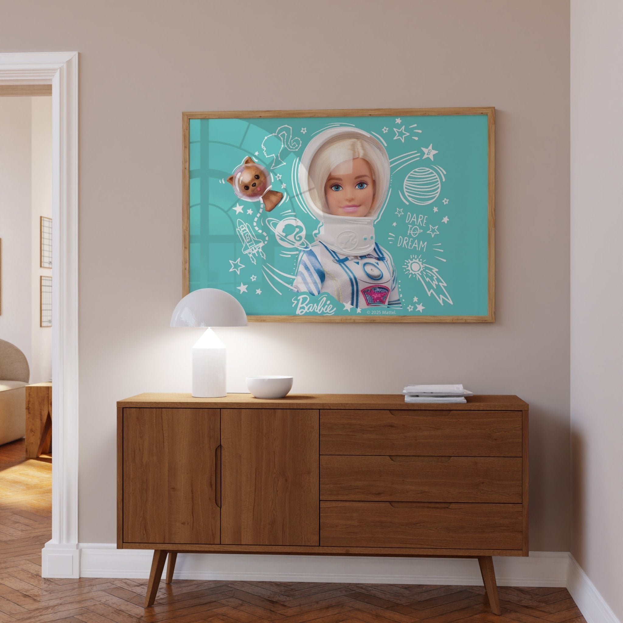 Add a burst of playful inspiration to your living room, kitchen, or bedroom with the Barbie Dare to Dream Wall Art Print. This fun poster encourages dreaming big while brightening your walls with vibrant colors and cheerful energy.