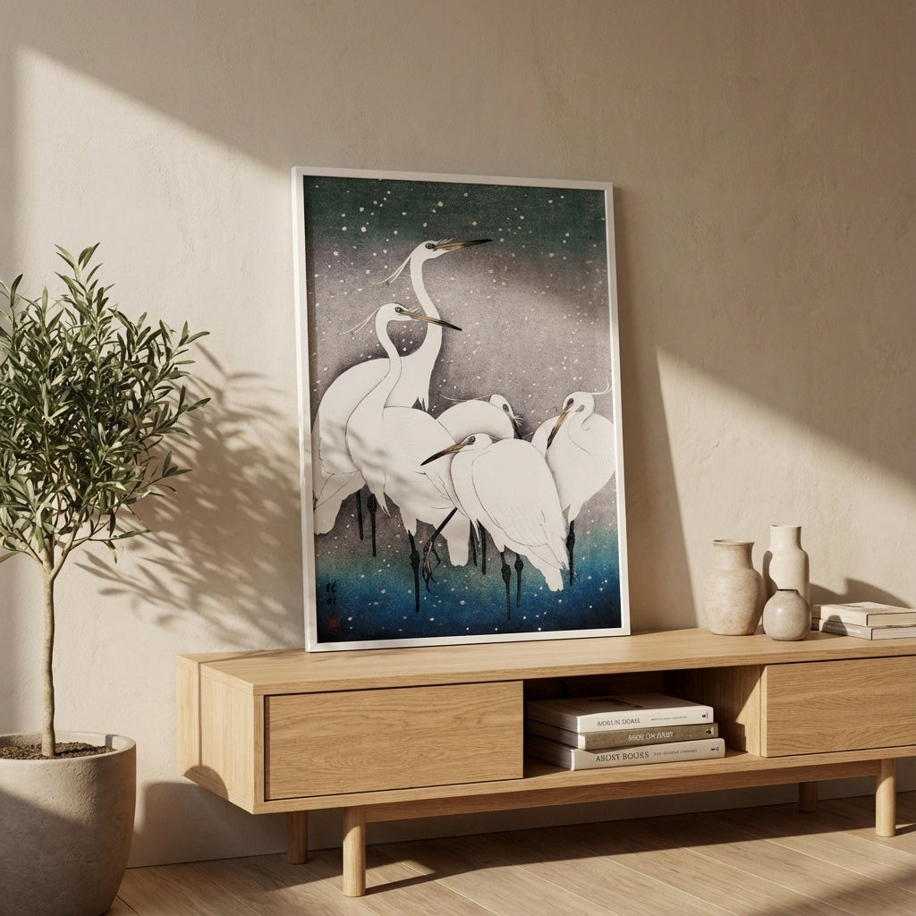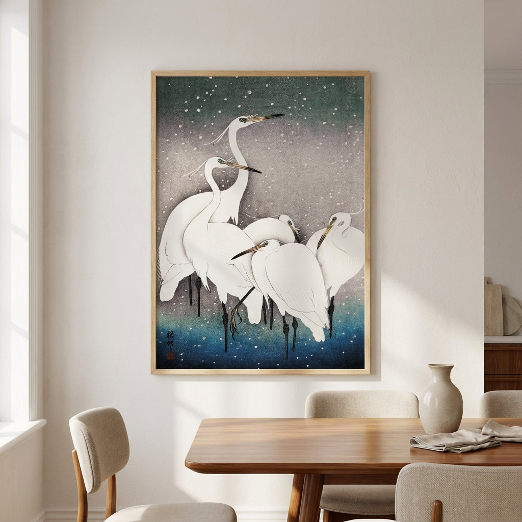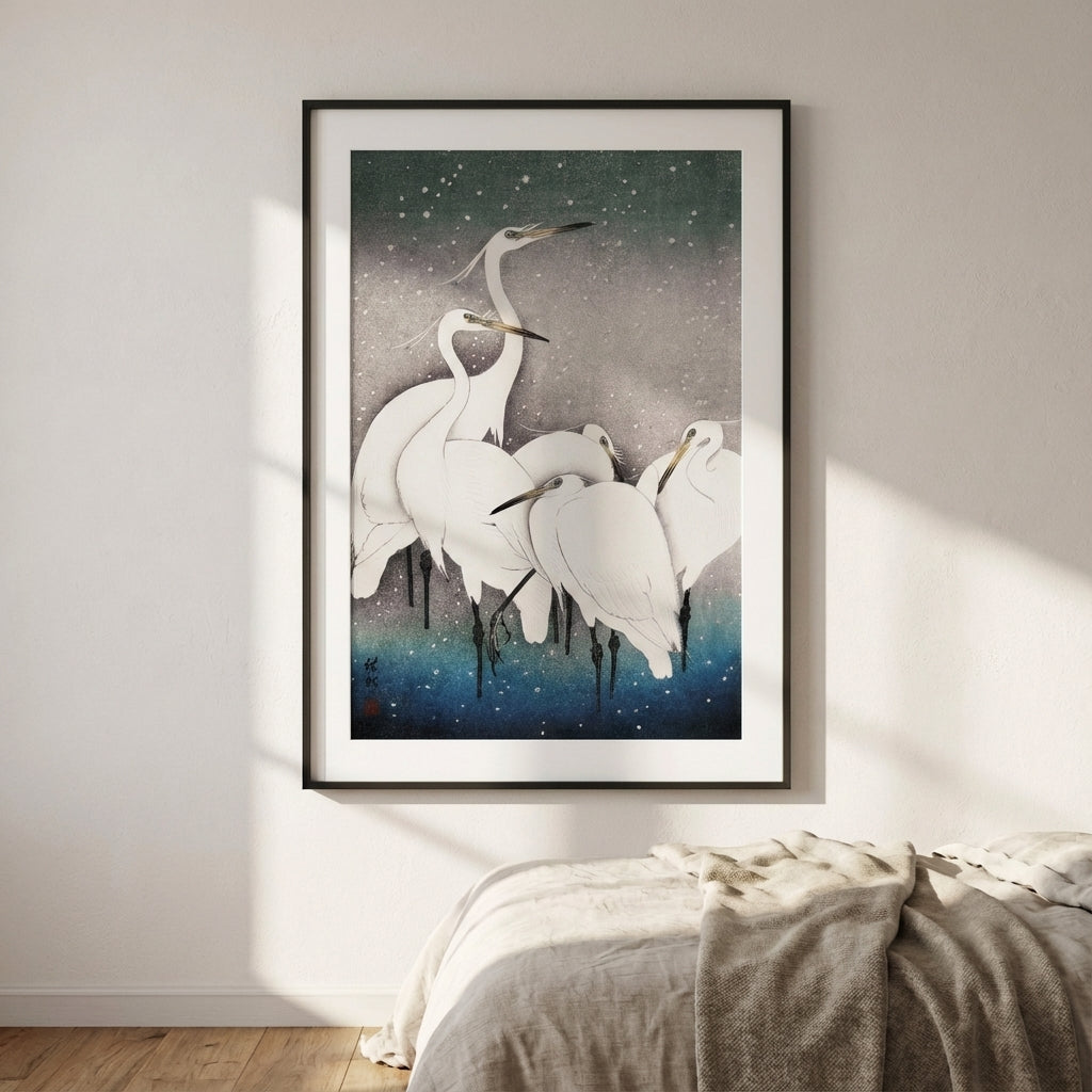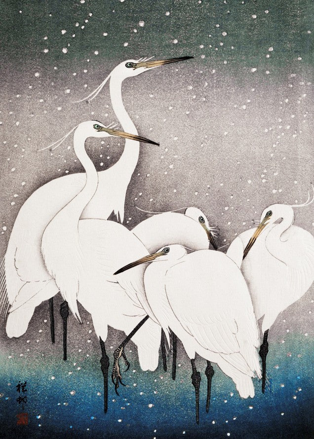 Egrets Birds in Snow 1925 Japanese Woodblock Print