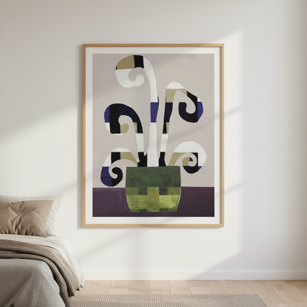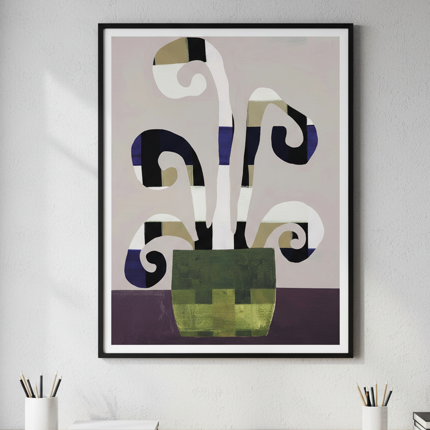 Composed Growth by Berit Mongensen Lopez presents a sophisticated exploration of form and colour through carefully balanced geometric abstraction. Layered shapes interact across a fluid gradient background, creating visual depth and movement that invites contemplation. This contemporary piece demonstrates masterful command of composition, where each element contributes to an overall sense of purposeful evolution. Ideal for collectors seeking artwork that combines intellectual rigour with aesthetic refinement, this abstract work functions as both a focal point and a conversation starter in any interior space.