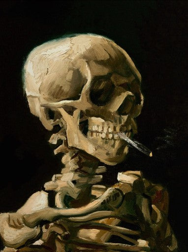 This hauntingly beautiful wall art depicts Vincent van Gogh's "Head of a Skeleton with a Burning Cigarette." Own a piece of art history and add a touch of dark elegance to your home decor. Handcrafted on high-quality canvas, this masterpiece is sure to make a unique statement in any room.