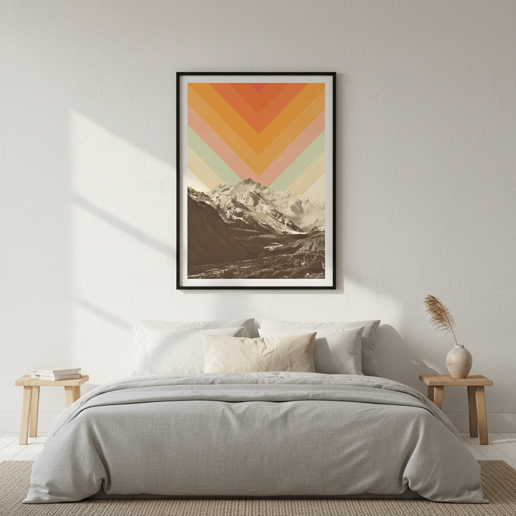 Discover the whimsical charm of Kodachrome Peaks by Florent Bodart—where majestic mountains meet a burst of vibrant, striped colour. This playful take on landscape art transforms rugged peaks into a celebration of bold hues and dynamic patterns, perfect for adding personality and visual pop to any space. Whether you're a nature lover with a taste for the unconventional or an art enthusiast who loves colour, this piece brings together the best of both worlds. A stunning conversation starter that proves mountains don't have to be serious to be spectacular.