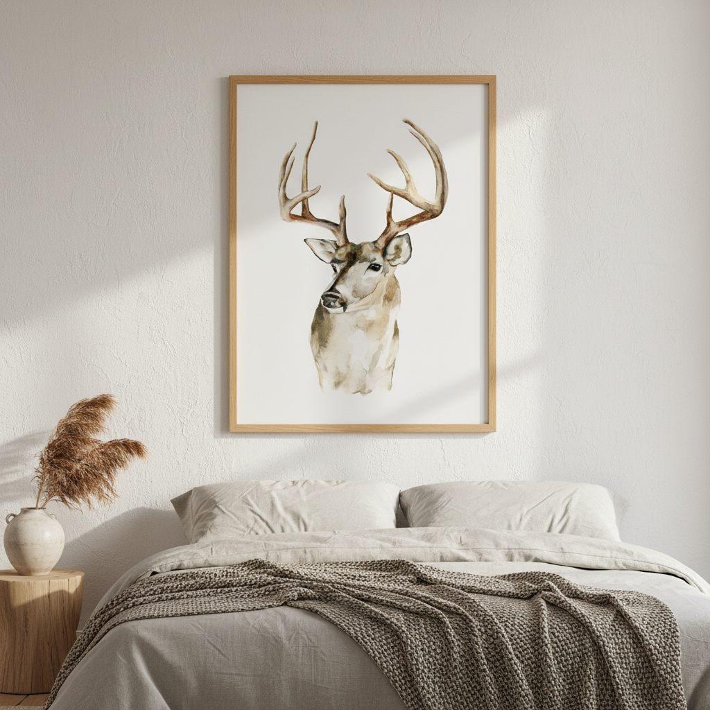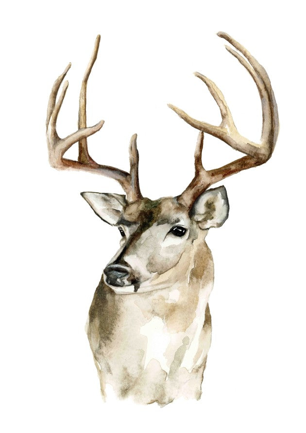 Mule Deer by Meredith O'Neal captures the majesty of wildlife through delicate watercolor technique. This striking composition features a noble deer head rendered with careful attention to anatomical detail, its distinctive large antlers commanding the composition against a clean white background. The artist's masterful use of watercolor creates soft transitions and luminous depth, bringing warmth and character to the subject. Ideal for nature enthusiasts and art collectors seeking an authentic, gallery-quality piece that celebrates the beauty of North American wildlife.