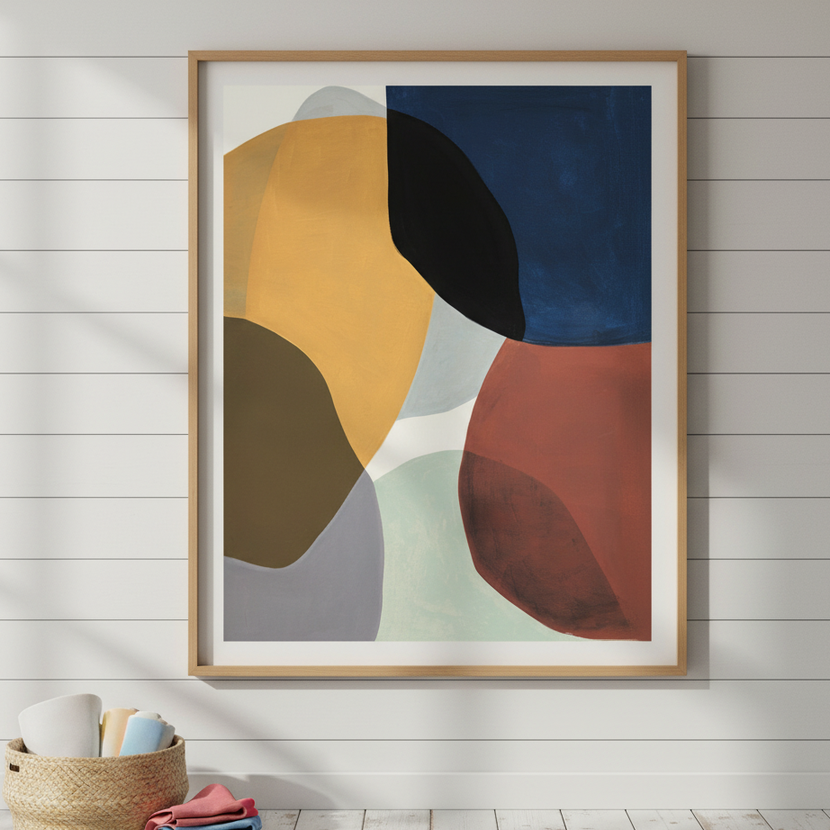 Overlap by Berit Mongensen Lopez presents a sophisticated exploration of form and colour through abstract geometric composition. Layered shapes in vibrant hues interact across a richly textured surface, creating visual depth and movement. The interplay of overlapping elements invites contemplation of spatial relationships and chromatic harmony. This contemporary piece brings dynamic energy to any interior, serving as a compelling focal point that rewards sustained viewing. Ideal for collectors seeking artwork that balances artistic integrity with visual impact.