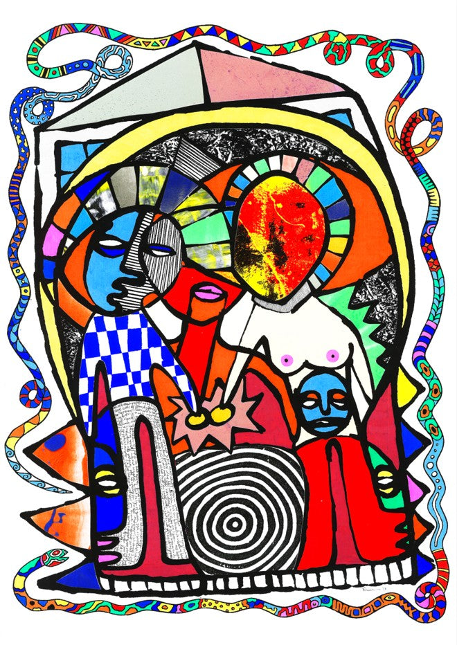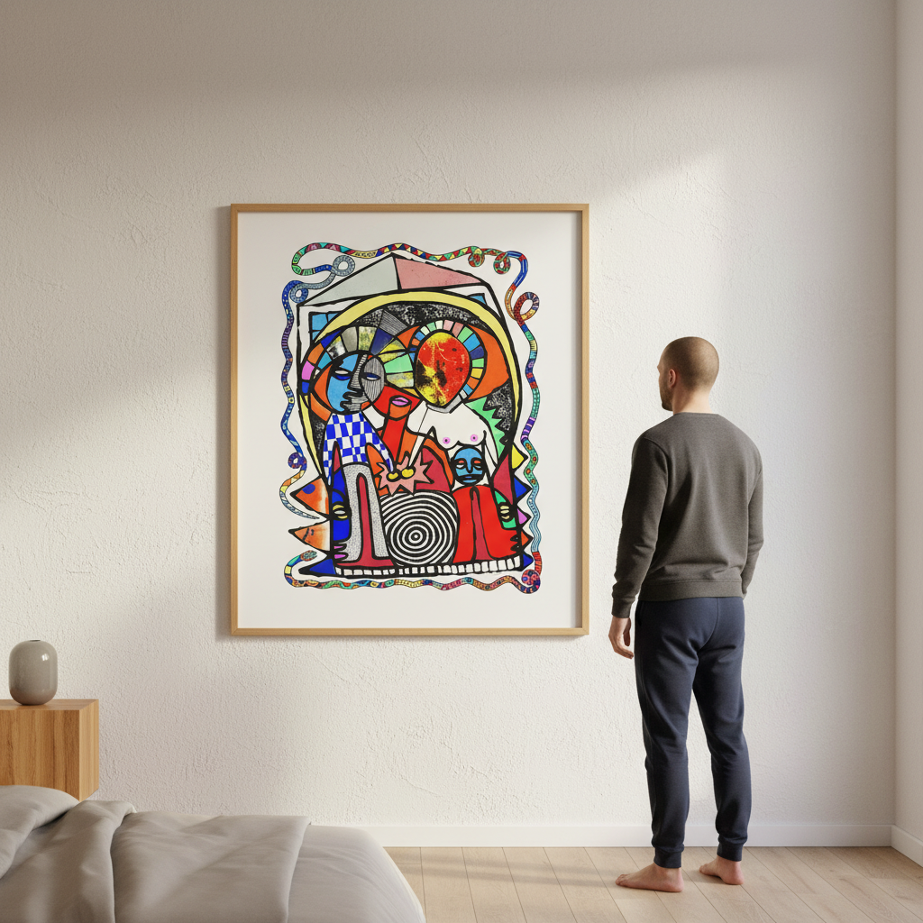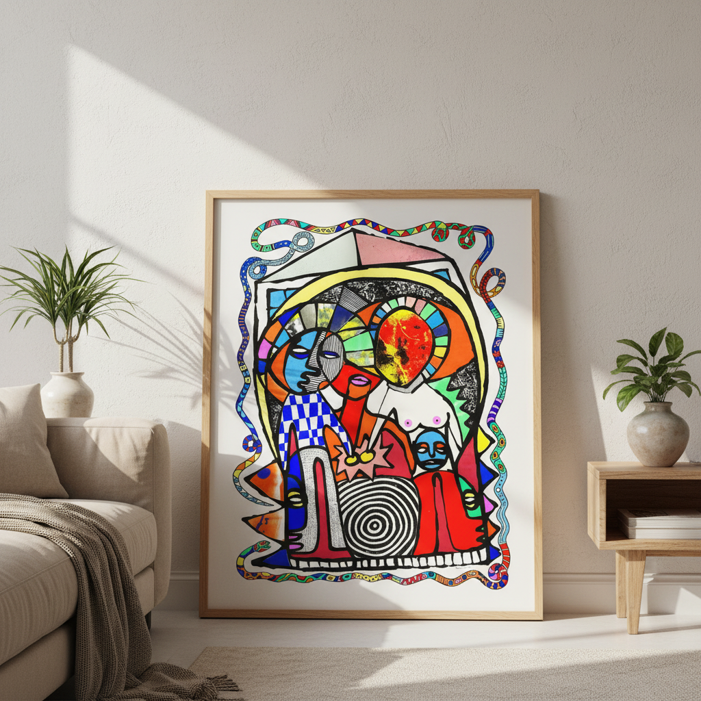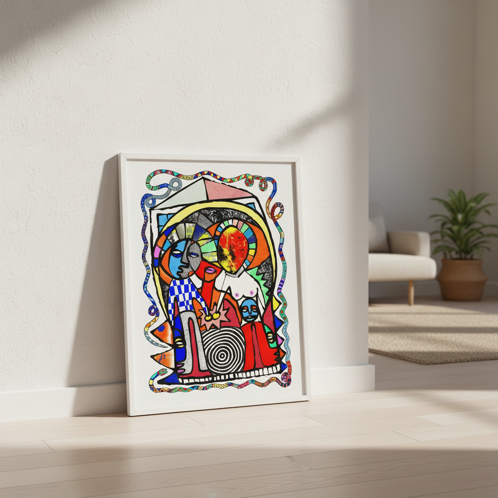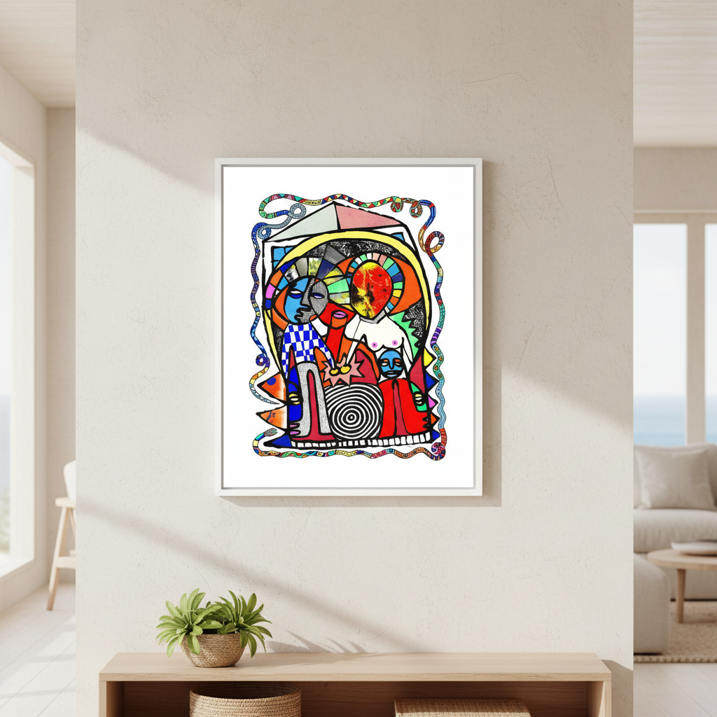 Home by Sven Reubens is a striking abstract composition that merges vibrant colour with dynamic geometric forms. This contemporary artwork features interlocking shapes and layered patterns that create visual depth and movement across the canvas. The bold palette and precise geometric construction make it an ideal statement piece for modern interiors, adding sophistication and artistic character to any space. Perfect for those seeking to elevate their walls with curated, gallery-quality design.