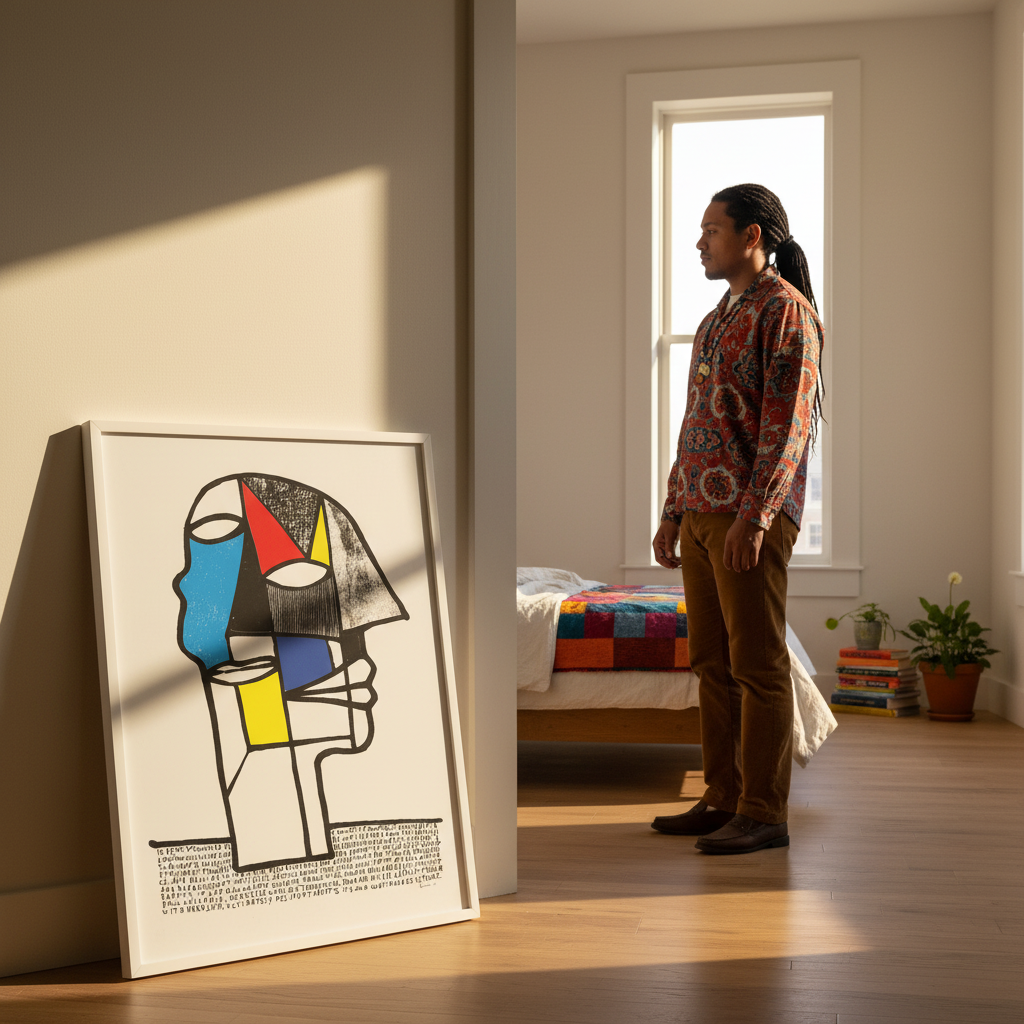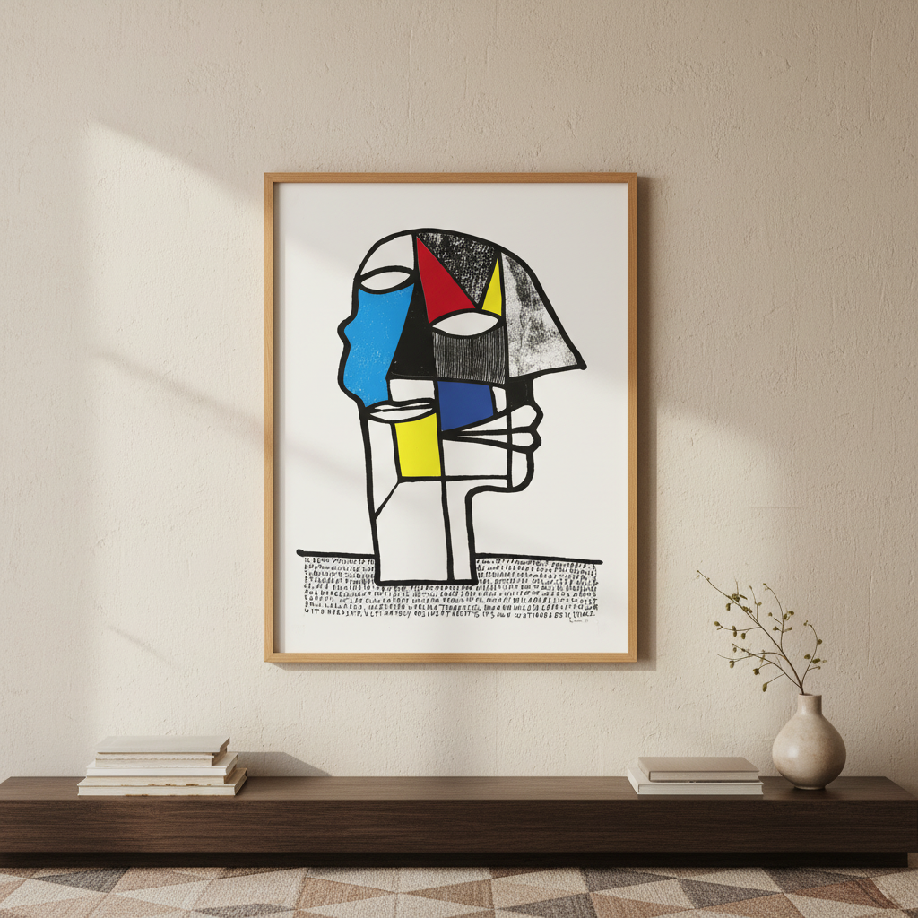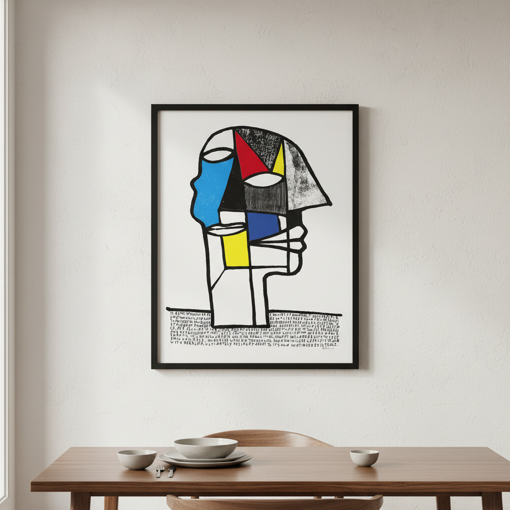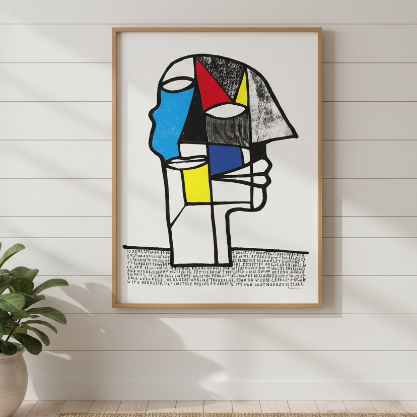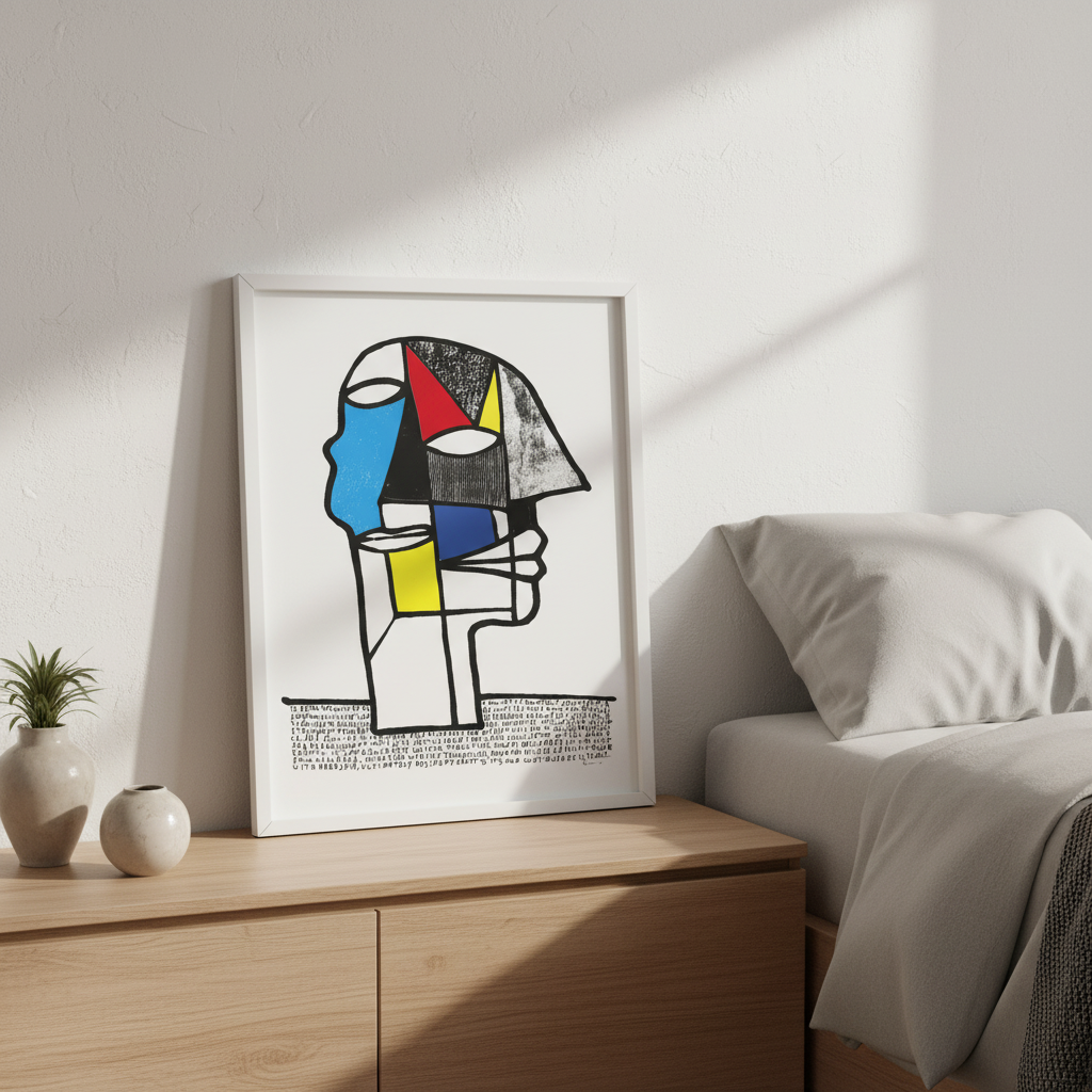Is Being Too Civilized as a Society a Downfall? by Sven Reubens presents a thought-provoking abstract composition that merges geometric forms with philosophical inquiry. This striking artwork features bold geometric shapes arranged across a clean white background, complemented by carefully integrated text that invites contemplation. The interplay between visual abstraction and linguistic elements creates a dynamic dialogue, encouraging viewers to engage with both the aesthetic and conceptual dimensions of the piece. Ideal for contemporary spaces seeking to stimulate intellectual conversation and add visual sophistication to your walls.