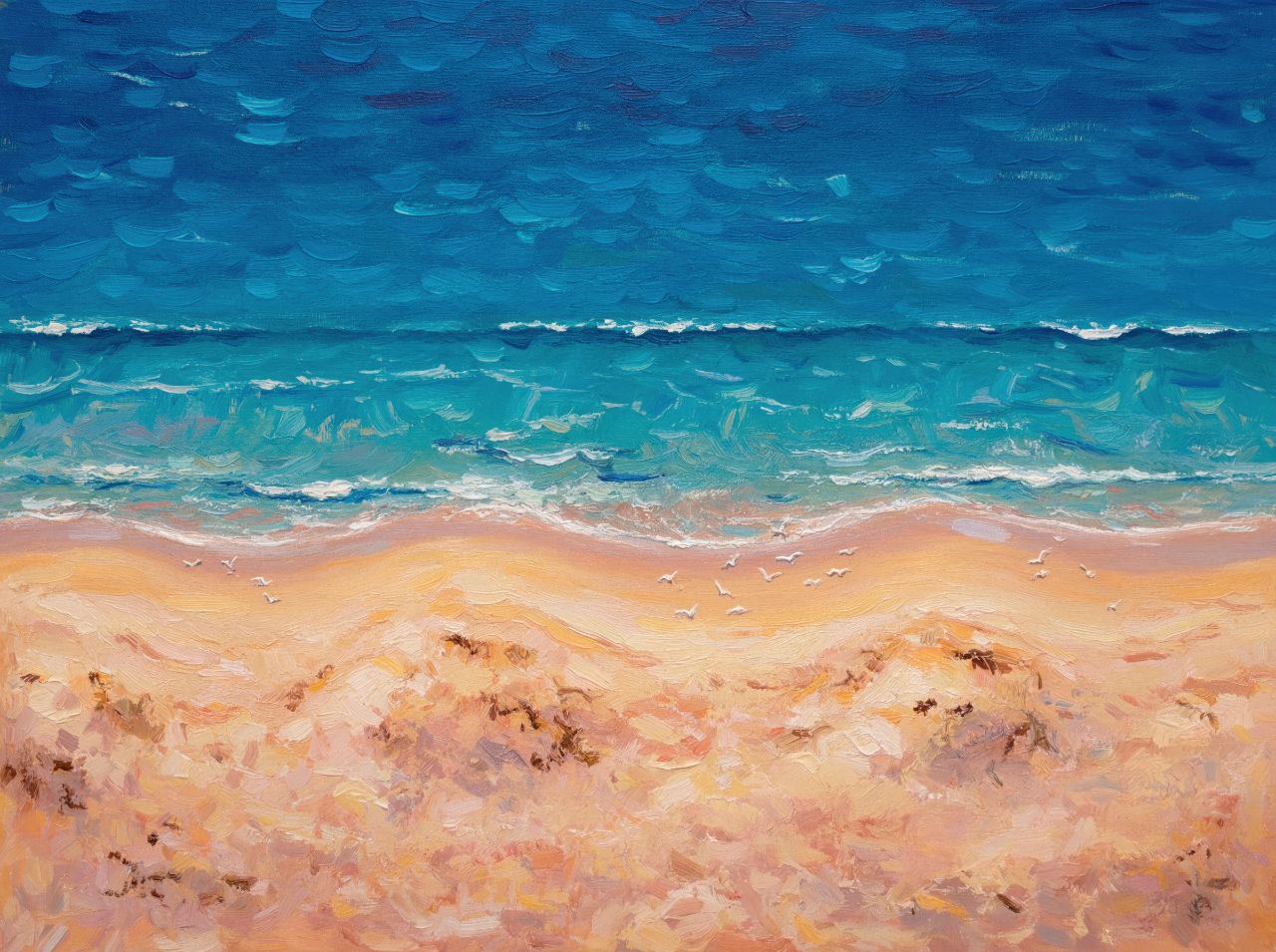 Beach Birds Eye Landscape Brushstrokes Painting Wall Art