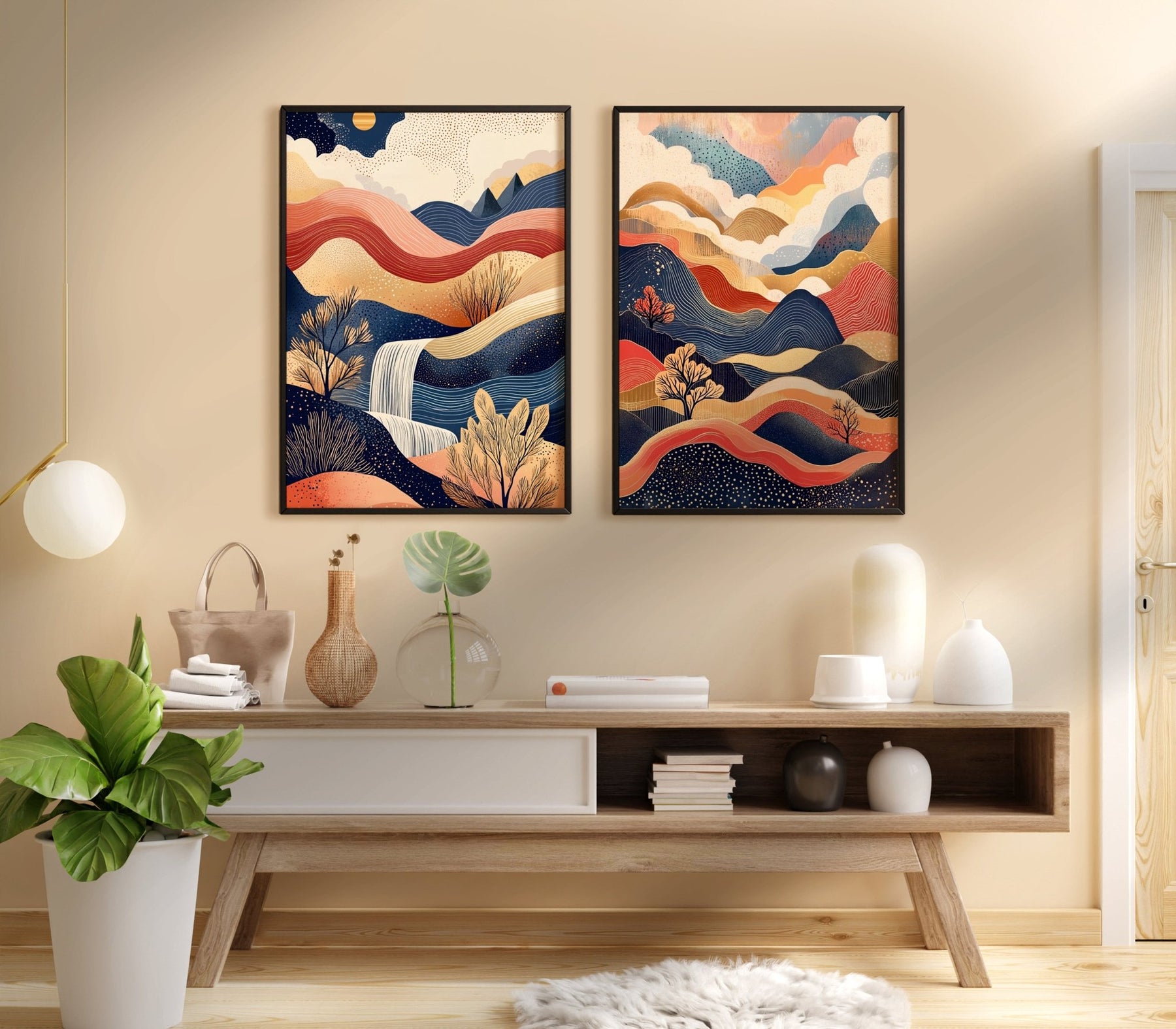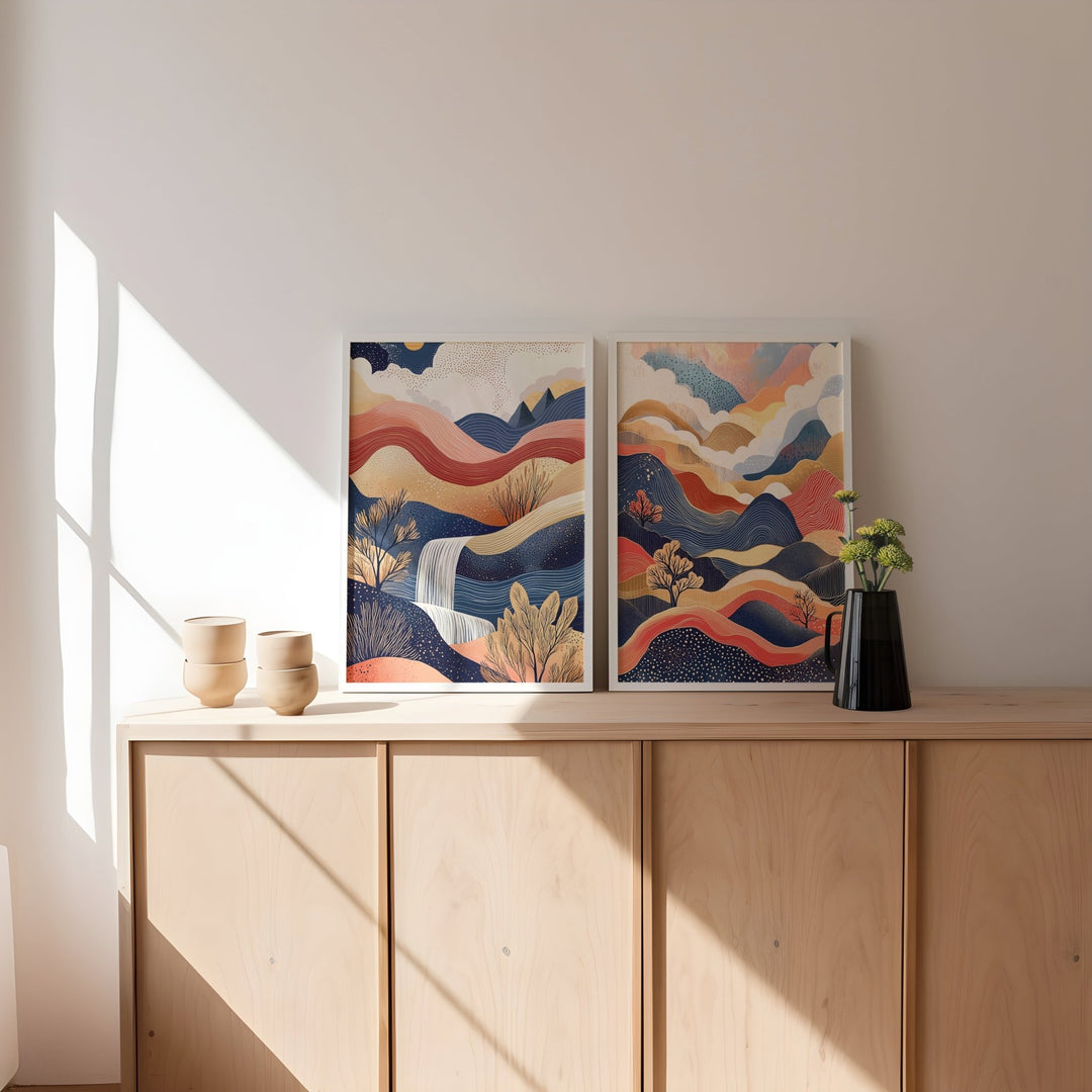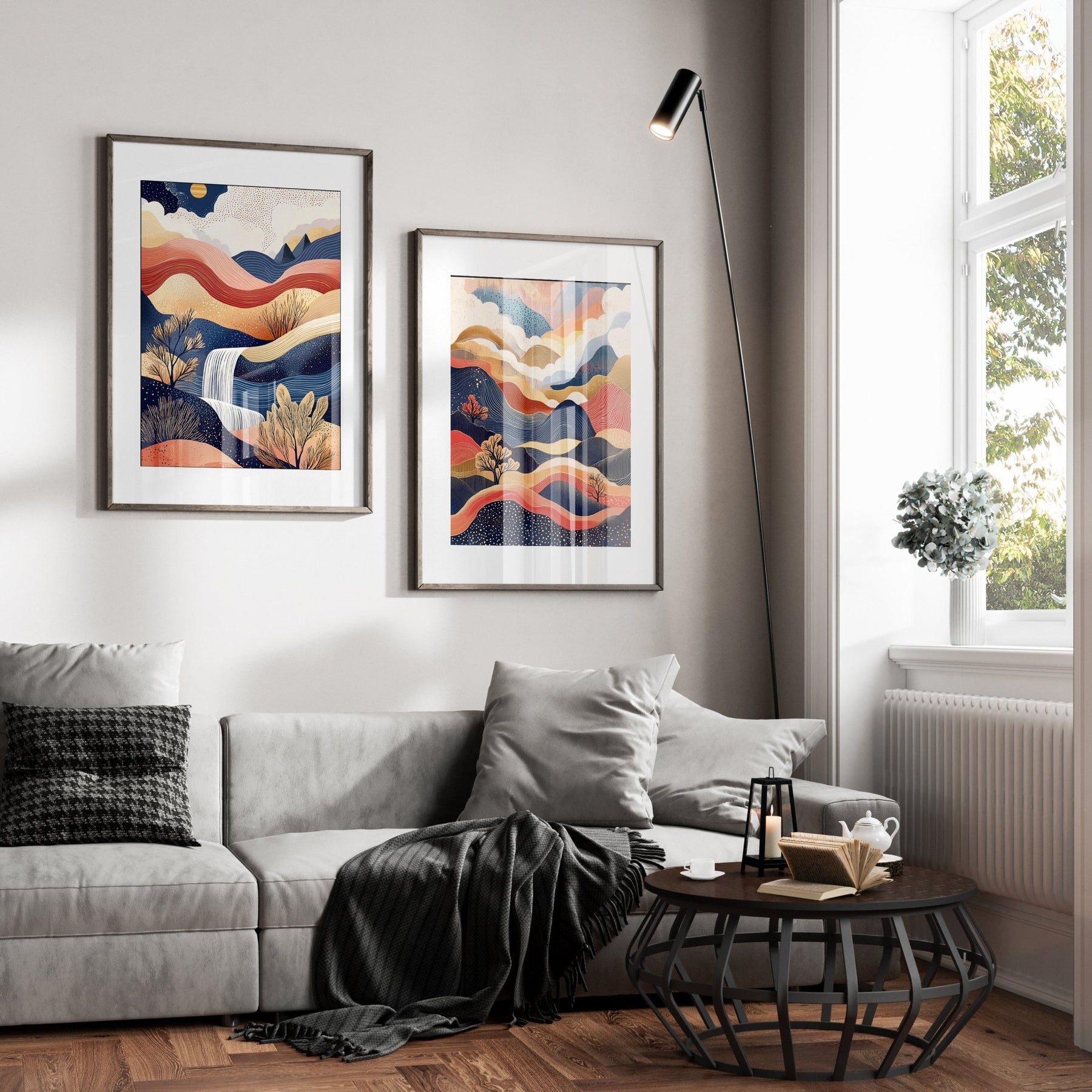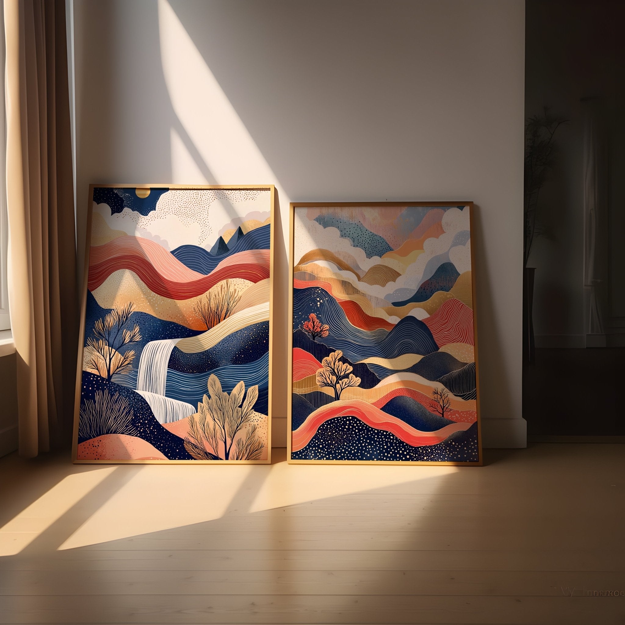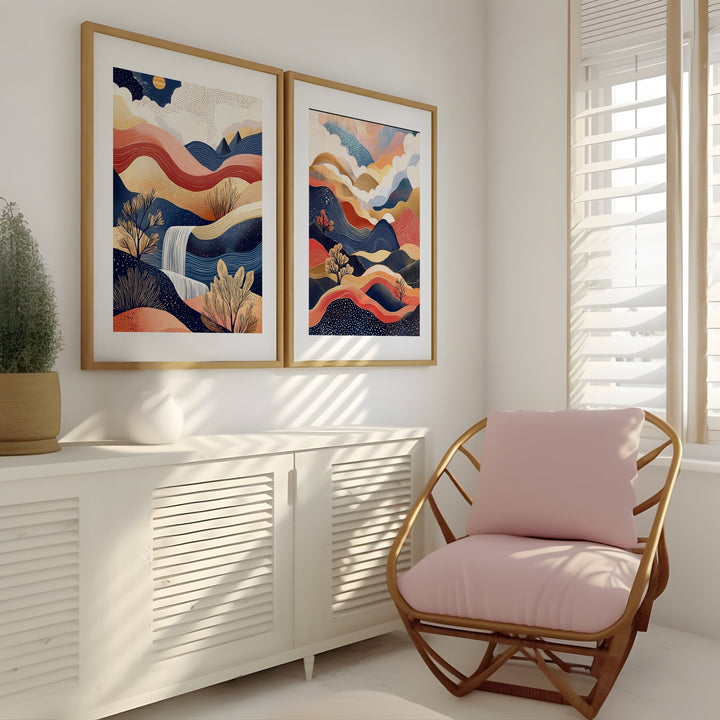 Add a touch of sophisticated whimsy to your living room, kitchen, or bedroom with the Japanese Surreal Abstract Dreams Pair. These artful posters blend surreal imagery with abstract design, creating a playful yet elegant atmosphere. Perfect for enhancing your space with unique visual interest, they invite imagination and style into everyday living.