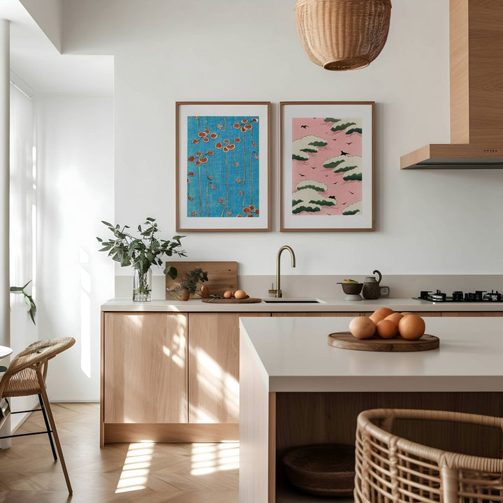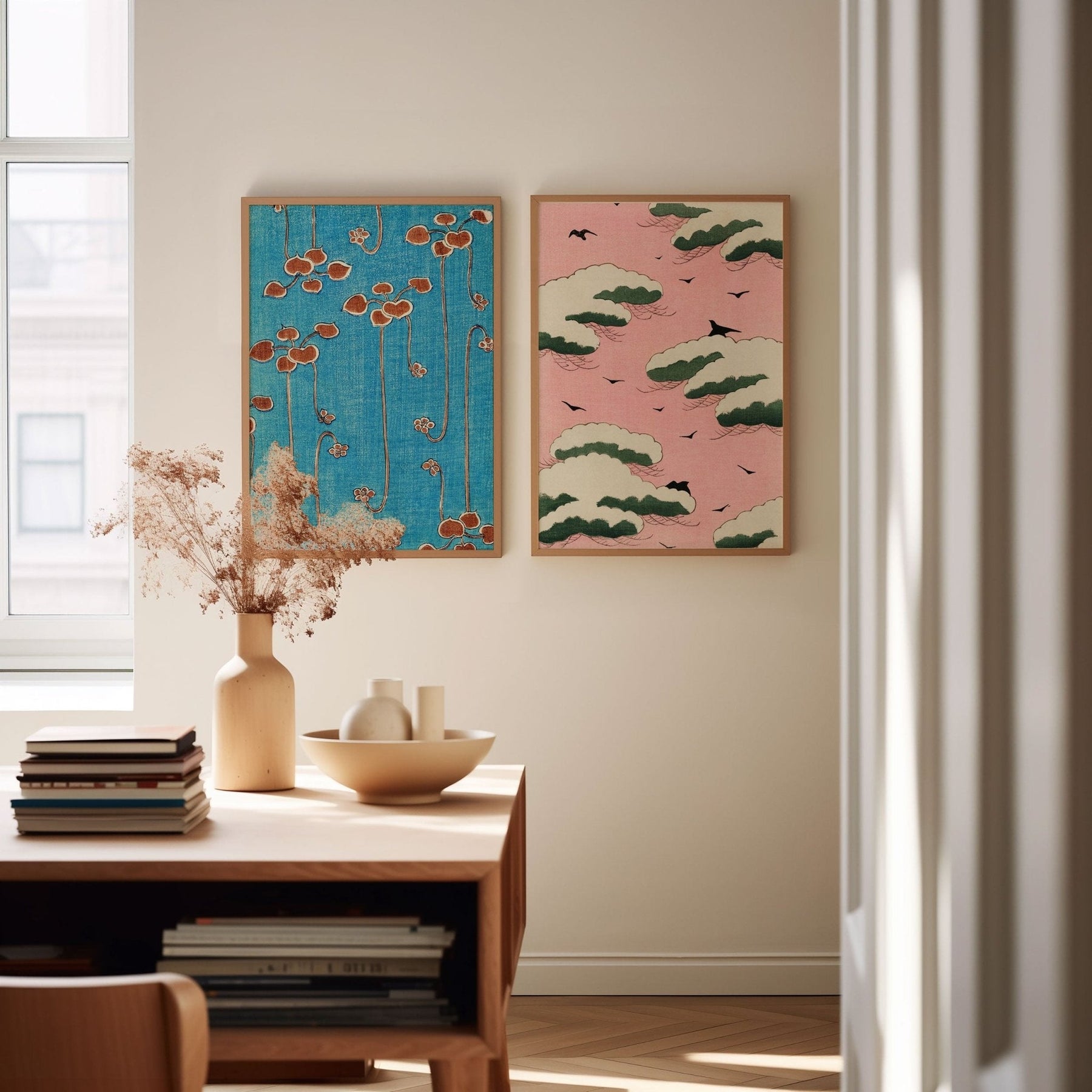 Experience the timeless beauty of Japanese art with our Bijutsu Sekai wall art set. This matching set features blue maple and pink orchard designs, adding a touch of elegance and tranquility to any space. Made with the highest quality materials, this set is the perfect addition to your home or office.