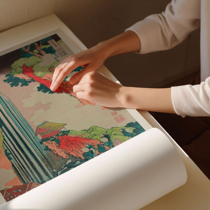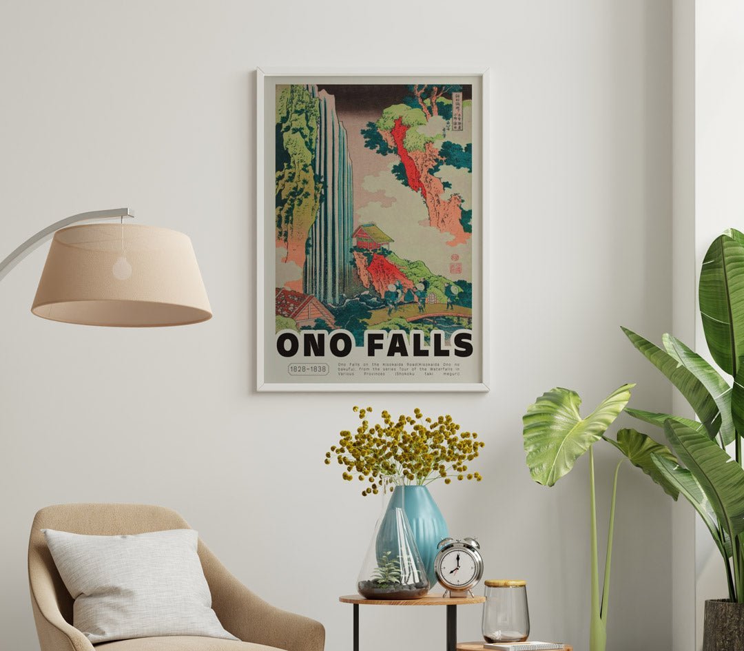 Experience the stunning beauty of Ono Waterfall on the Kisokaido with this wall art by Katsushika Hokusa. With intricate detail and vibrant colors, this piece will transport you to the serene atmosphere of the Japanese countryside. Perfect for any art lover or nature enthusiast, this artwork is a must-have addition to your home.