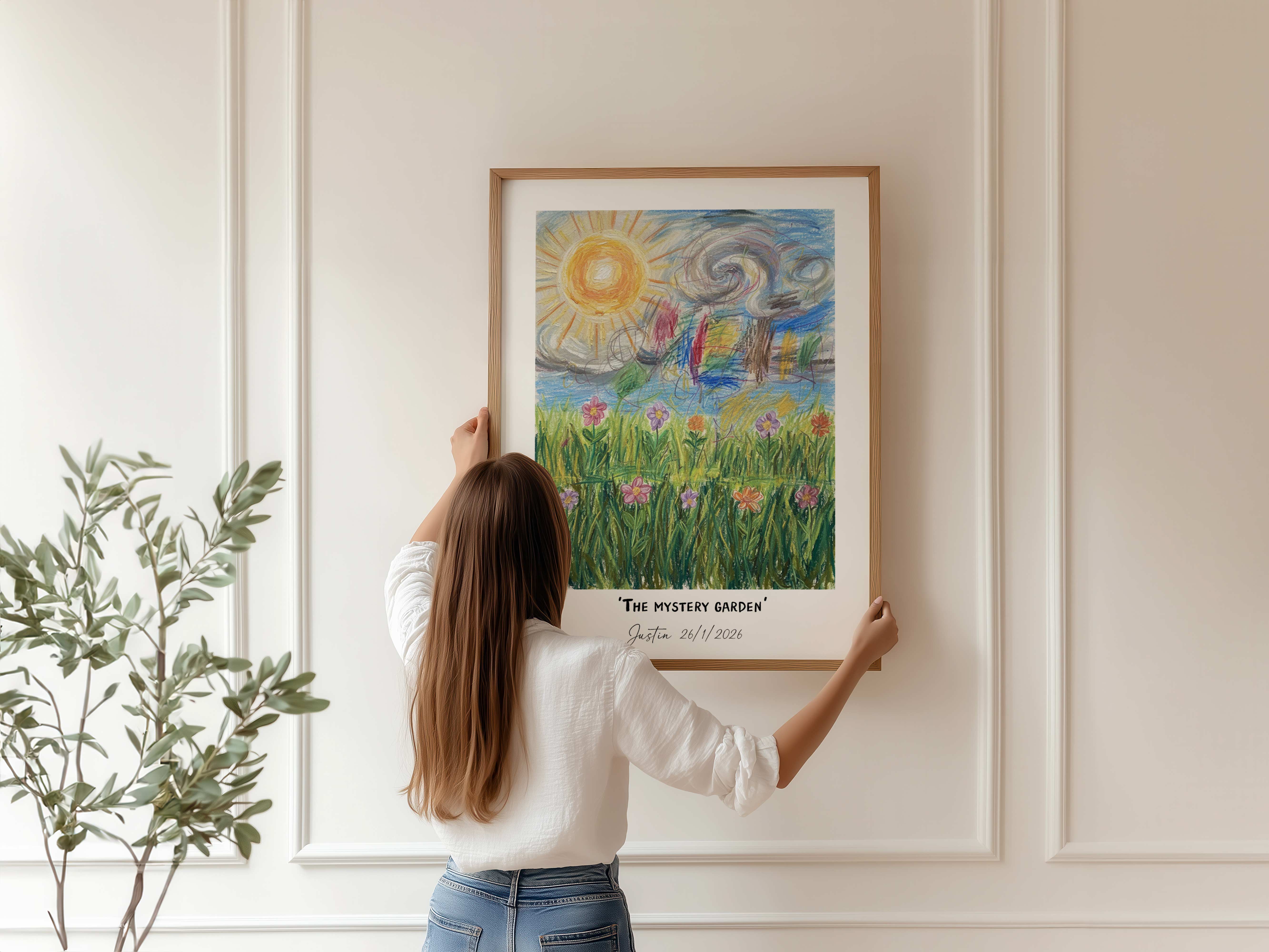 Turn your child’s artwork into a timeless framed print you will treasure for years. Simply upload a photo or scan of their drawing, and we professionally enhance, clean, and refine it while preserving every original detail that makes it special.