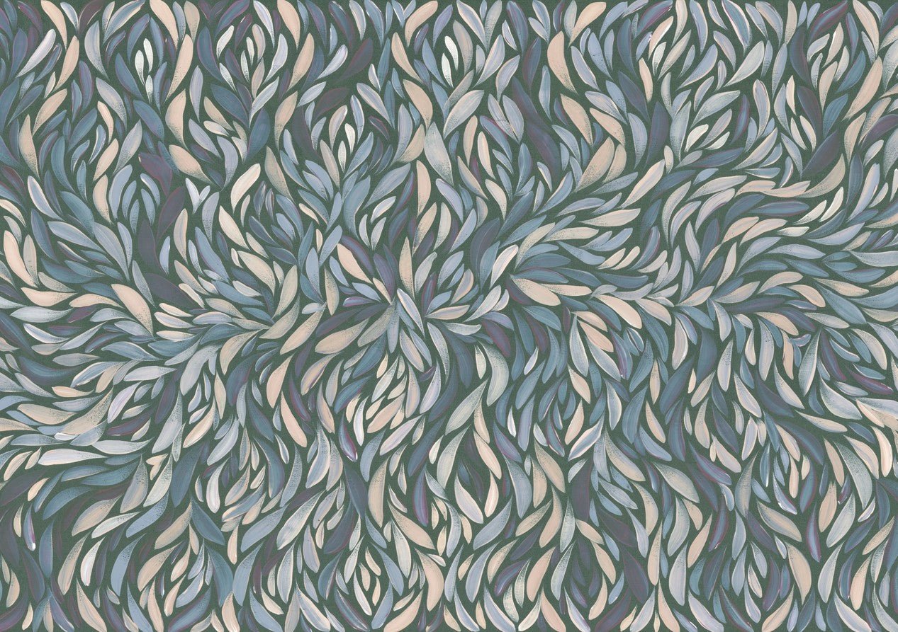 Tumbetin Baibaiye Healing Leaves Purple Beige and Cream Blue Tone by Emma Rigney